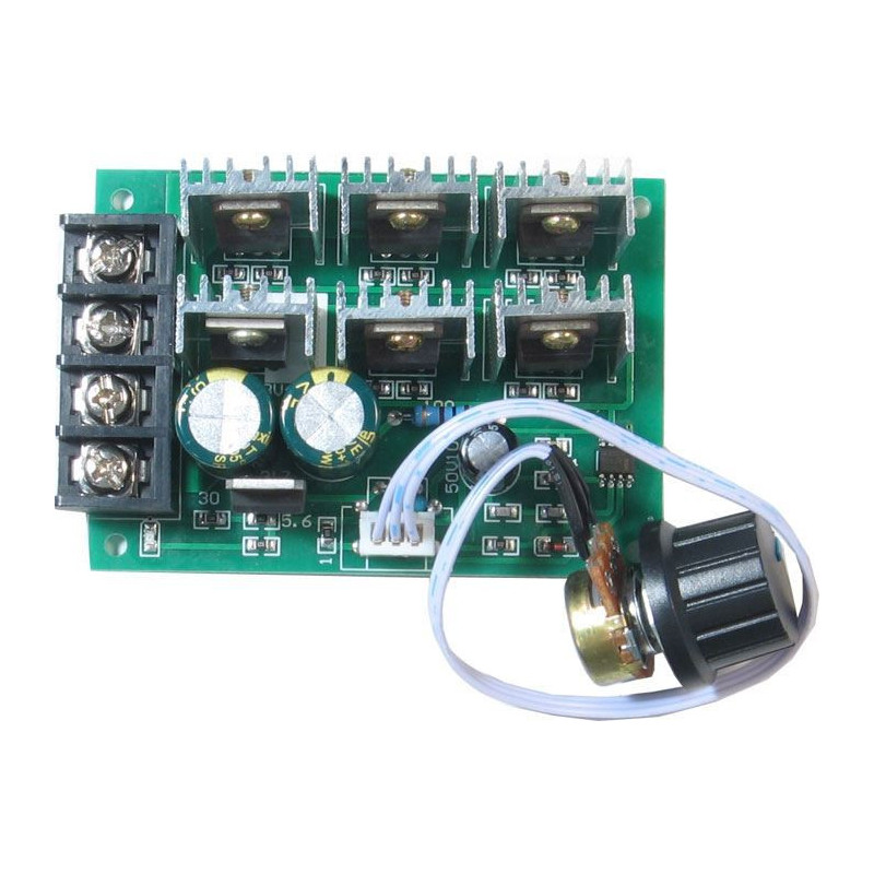 mpulsní PWM regulátor (PWM driver) pro DC motory. Pracovní napětí v rozsahu od 9 do 60 V, maximální proud 20 A. Nastavitelný výkon - potenciometrem.