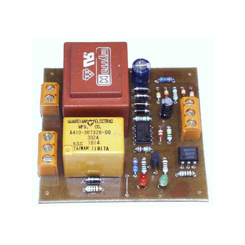 Modul se spožděným odpadem relé. Po stitku tlačítka, nebo přivedení signálu na svorku TRIG, je relé sepnuté po nastavenou dobu. Nastavení prodlevy víceotáčkovým trimrem 0 - 24s.