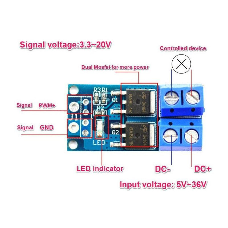 PT016 PWM výkonový regulátor 8-24V,max 15A,nesestavené Rozměry: 50x29mm