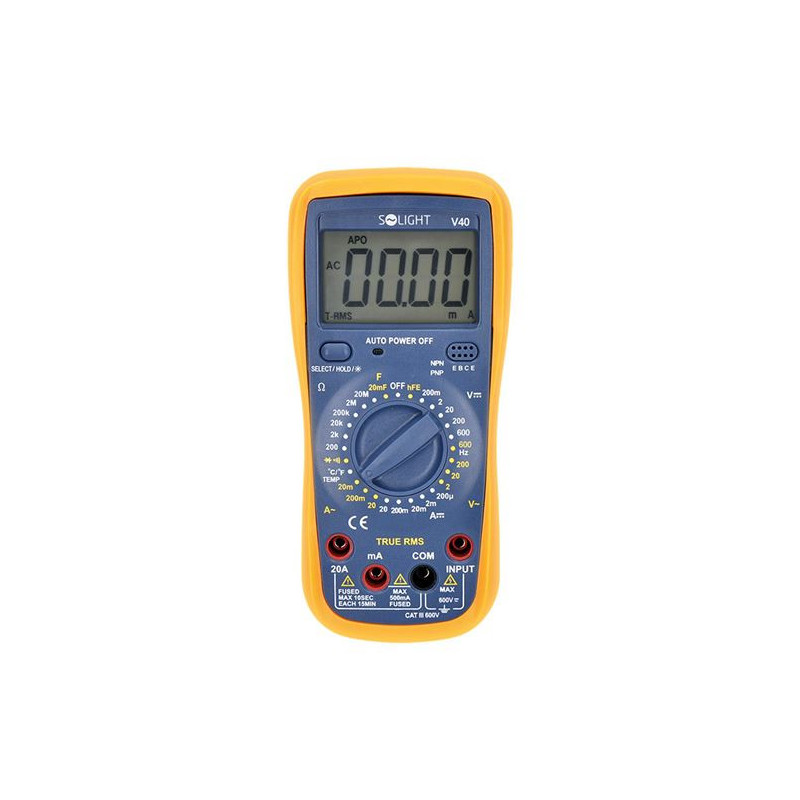 Spolehlivý kapesní multimetr s digitálním displejem, který zobrazí až 4000 číslic. Ideální nástroj pro měření stejnosměrného i střídavého napětí a proudu, odporu, kapacity a spojit