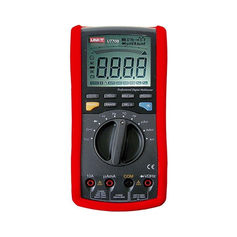 Přenosný digitální multimetr přístroj UT70B se zdokonalenou konstrukcí, novým designem, velkým displejem. Přístroj má optoelektronické rozhraní, které zaručuje absolutně bezpečné galvanické oddělení měřícího přístroje od PC. Je opatřen obalem ze stříkané měkké pryže, není nutné další pouzdro.