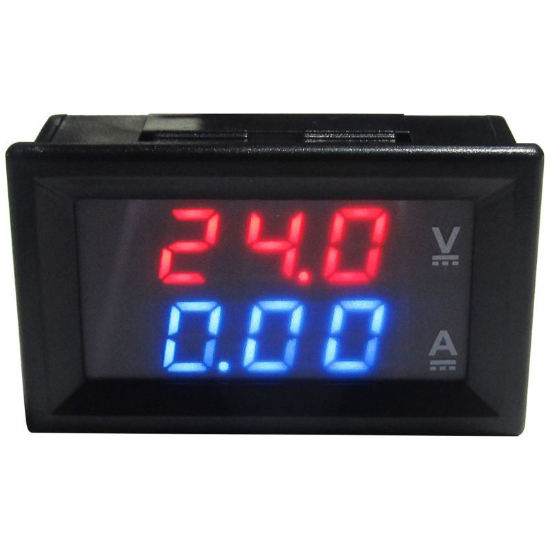 Digitální panelový měřič (napětí + proud) do panelu - červené LED určeno do otvoru o průměru 27,2mm Faston 6,3mm Rozsah měření