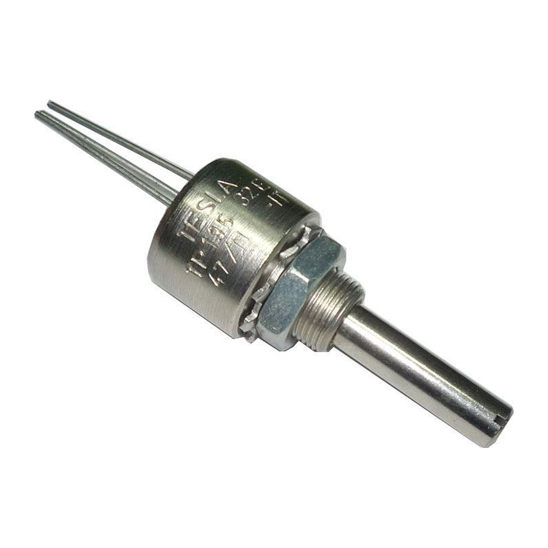 Potenciometr drátový 500R/2W, 10 otáč.Rozměry tělesa 22,22x18,6mm,hřídelka prům.6,35mm,délka 12,6mm.
