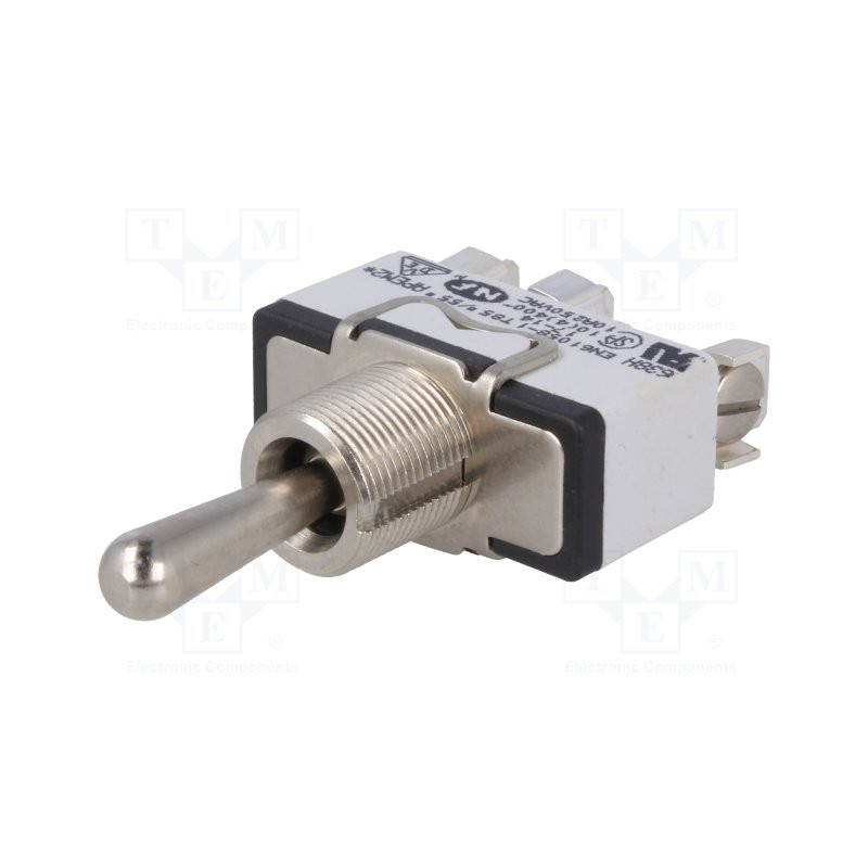 Přepínač páčkový,3pol,ON-OFF-ON, 10A/250VAC, 5A/24VDC,šroubové svorky. -20 - 55°C.29,5x14x15mm, montážní otvor 12,2mm.