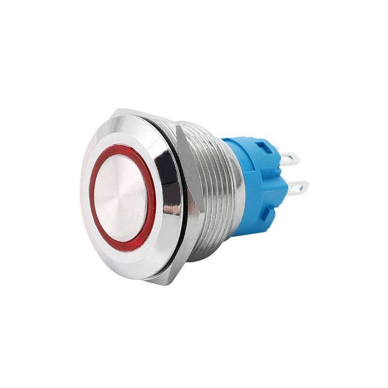Tlačítko OFF-(ON) ,montážní otvor 16mm, 1pol.250V/2A celokovové