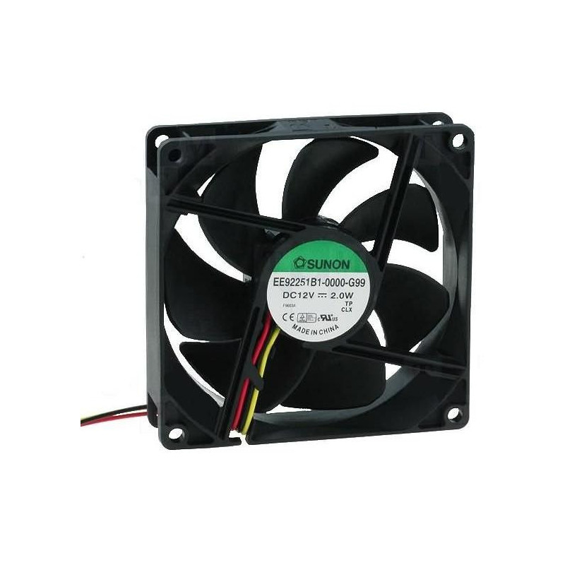 92x92x25, 12 V/140 mA, 1,68 W, 3000ot.51,5m3/h.34dB, Ložisko = kluzné