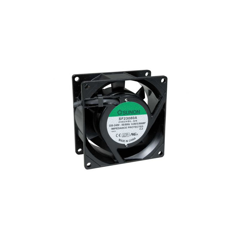230VAC 80x80x38mm 70mA/14,5W, 40,7m3/h., 32dB 2400ot.Kuličkové ložisko